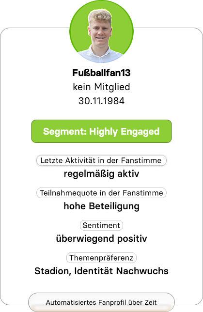 Das Profil wird bei jeder Fan-Interaktion automatisch aktualisiert und ermöglicht ein 360° Fan-Verständnis.